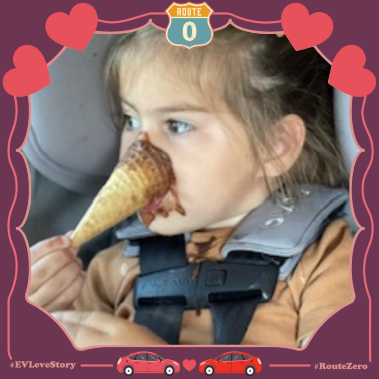 “Our favorite thing about driving electric is that our daughter has never smelled gasoline! We haven’t had an ICE [internal combustion engine] vehicle since she was born in 2020 and our hope and goal is she never has to be exposed to the toxic fumes at a gas station.”